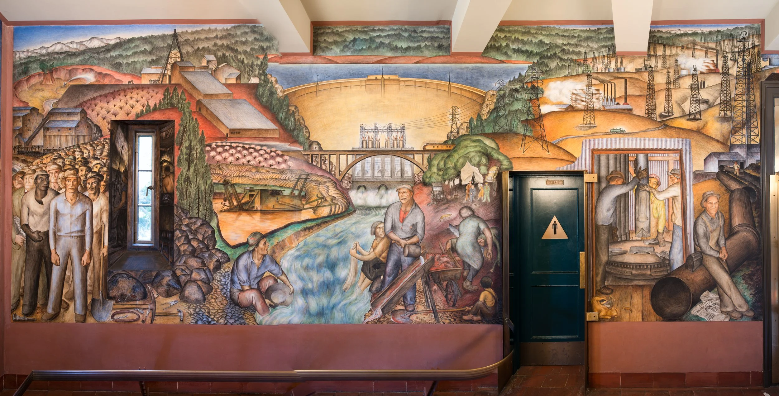 Howard wanted to communicate society’s needs for the betterment of the future. His landscapes began to include industry and its effects on the surrounding region. Howard was hired by the FPA in 1934 to create a mural for the inside of Coit Tower on Telegraph Hill in San Francisco depicting California industry. The project had twenty-seven artists depict a scene central to California living, including industry, agriculture, law, and street scenes of San Francisco. (“JOHN LANGLEY HOWARD (1902-1999) - Artists”)